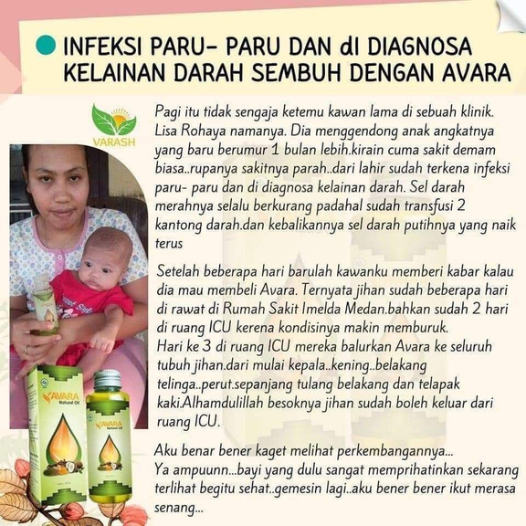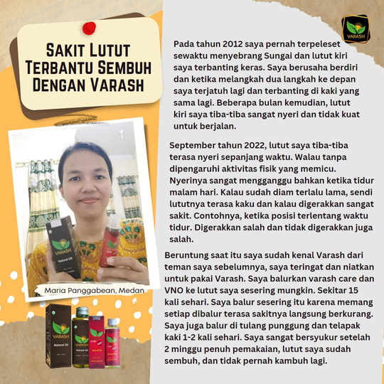 Varash Natural Oil merupakan minyak herbal yang terbuat dari tanaman herbal berkhasiat obat untuk membantu mengatasi berbagai keluhan kesehatan, seperti penyakit degeneratif, keluhan penyakit menahun, ringan, dadakan dan keluhan yang tidak jelas penyebabnya.